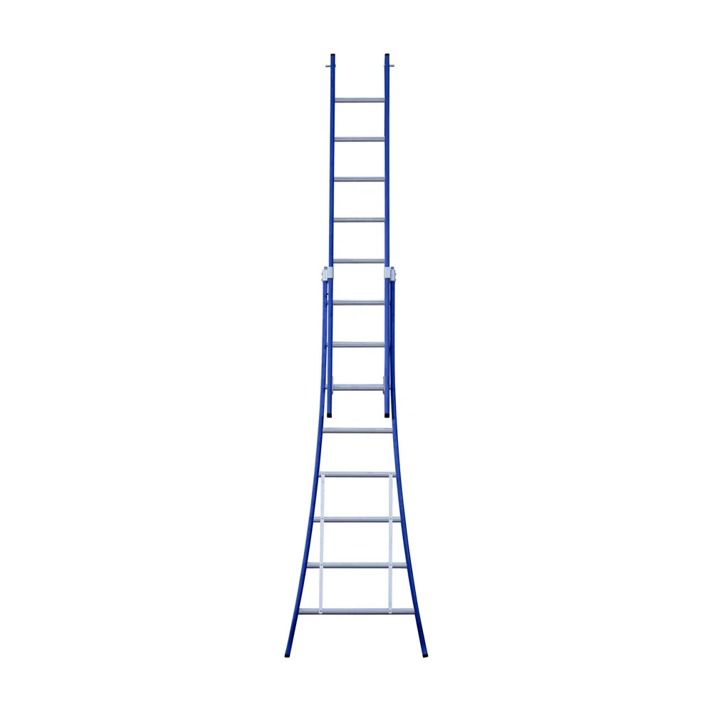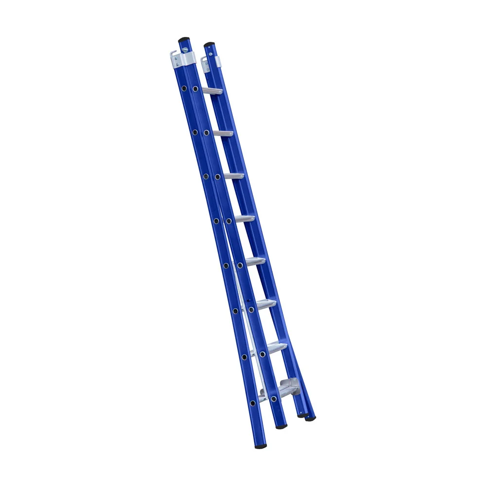 Eurostairs 2 section combination ladder 2x8 rungs curved base blue