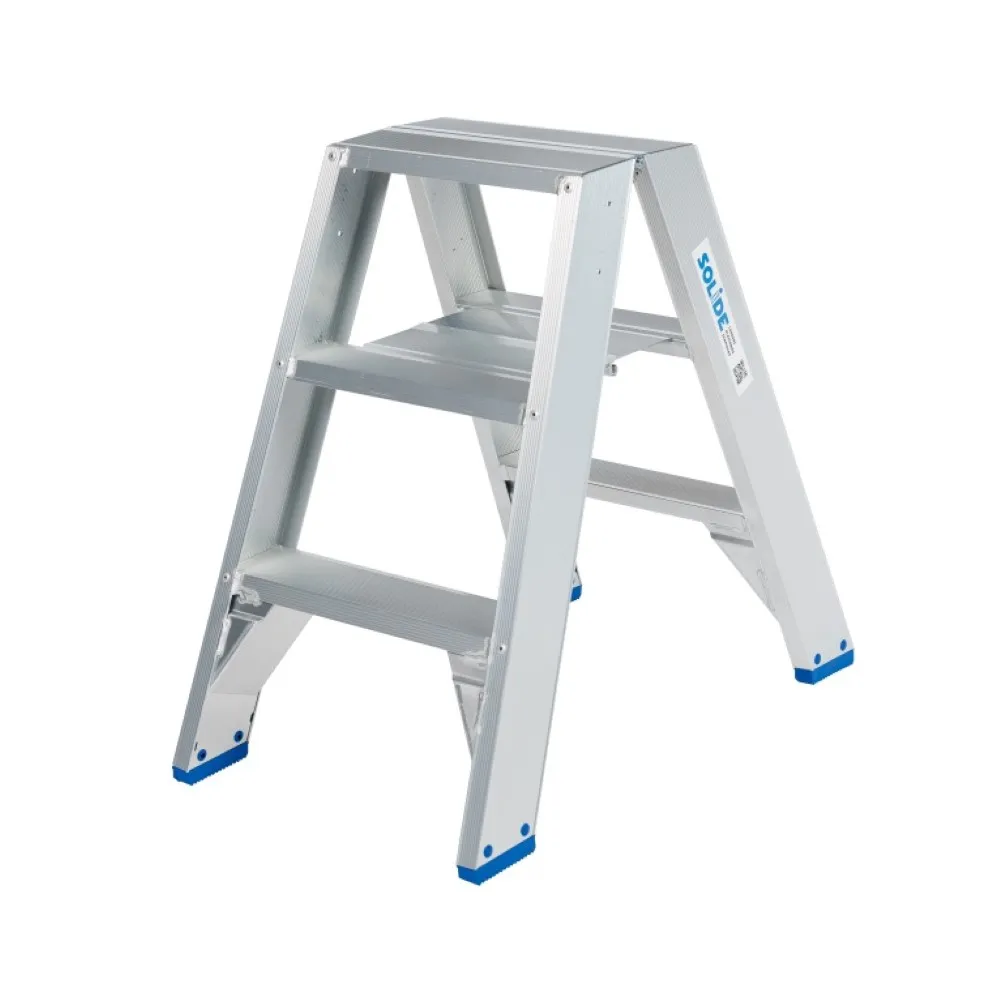 This Solide professional double step ladder 3 tread is a reliable solution for professional use where safety, sturdiness, and ease of use are essential. Ideal for those seeking a durable, safe, and versatile ladder for intensive daily tasks.