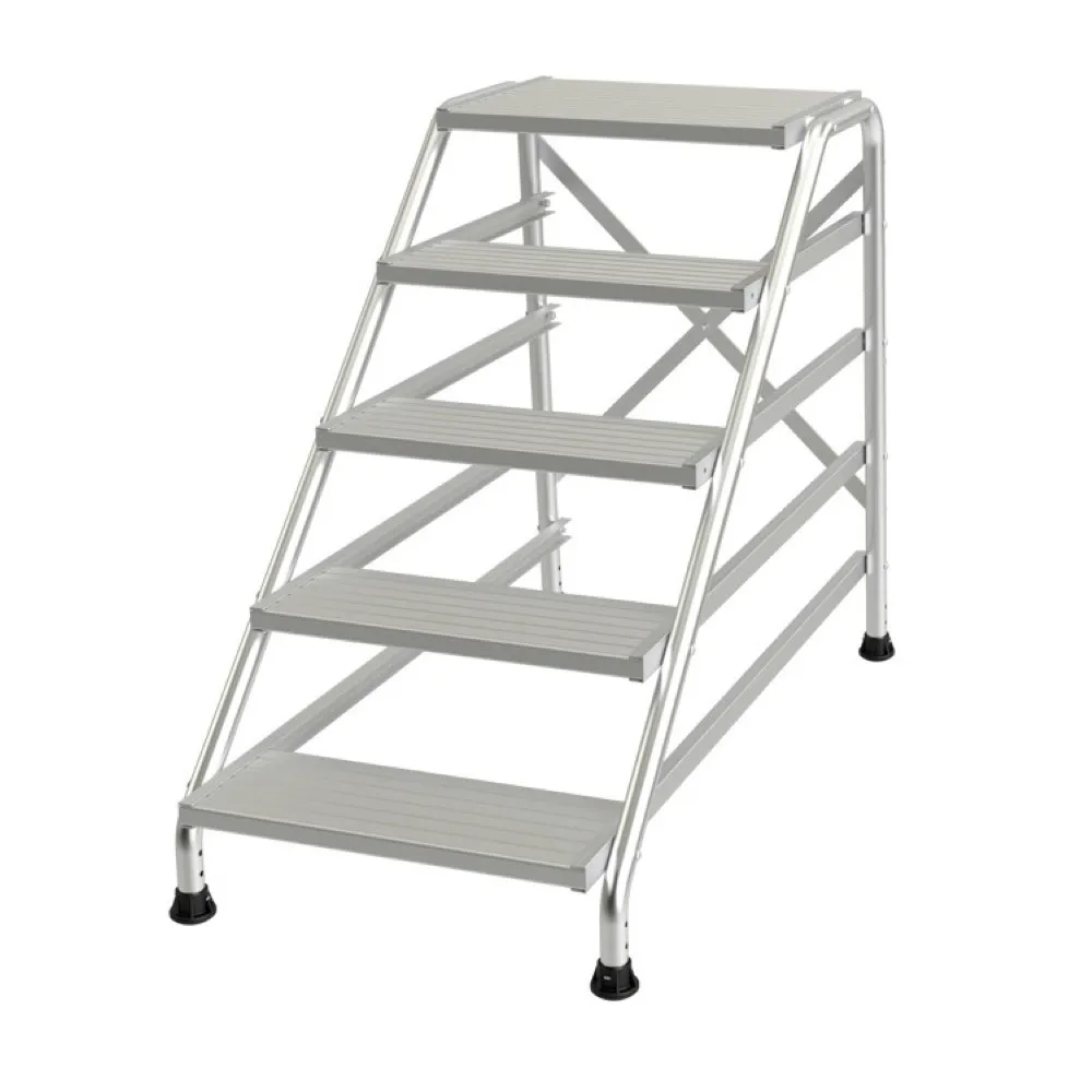 The Tubesca Modul 5-step aluminium work platform combines safety, stability and comfort, making it an excellent choice for professionals who need a reliable industrial work platform or warehouse ladder for daily tasks.