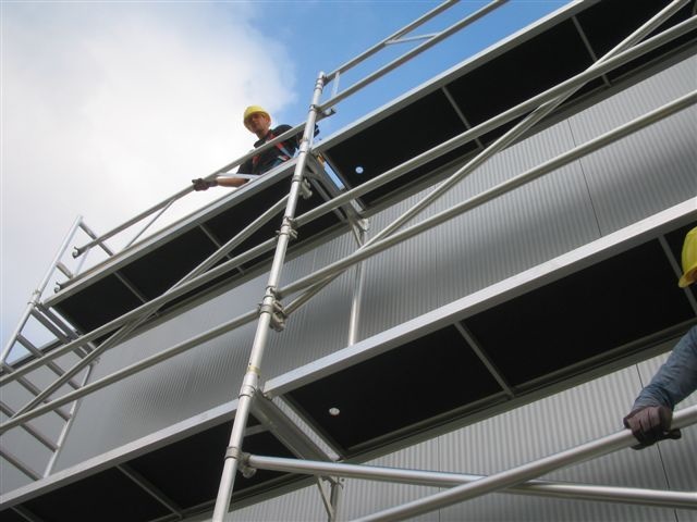 L’échafaudage de façade ASC, longueur 10 m x hauteur de travail 8 m, est un échafaudage de chantier professionnel en aluminium, idéal pour les travaux de toiture, le rejointoiement, le nettoyage de façades, l’enduisage de façades et l’installation de panneaux solaires. Grâce à sa construction stable mais légère, cet échafaudage à montage rapide est parfait pour les travaux ne nécessitant pas le placement de matériaux lourds sur l’échafaudage.