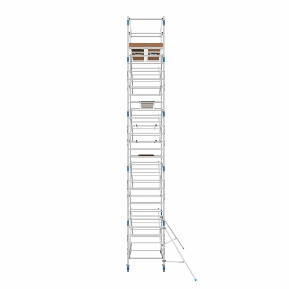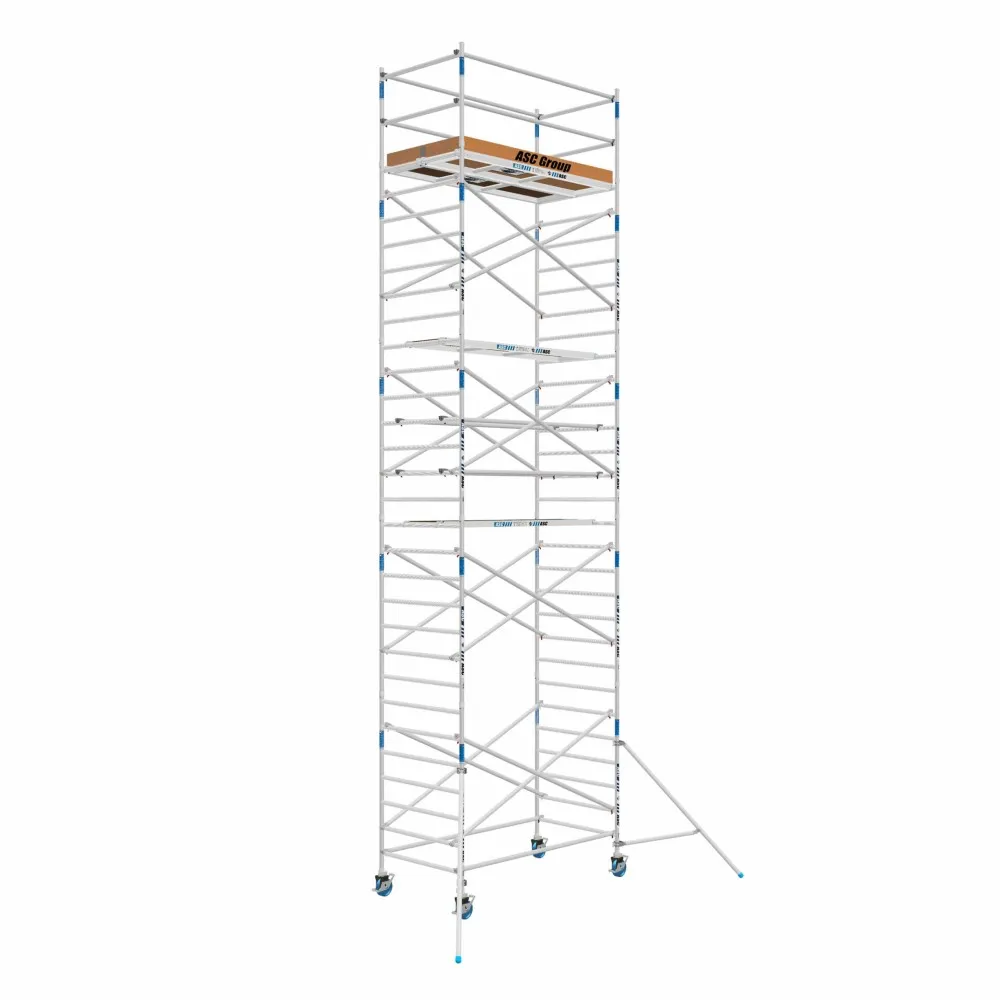 L’échafaudage roulant large ASC peut être monté jusqu’à une hauteur de travail impressionnante de 14,20 mètres, idéal pour les projets en hauteur.