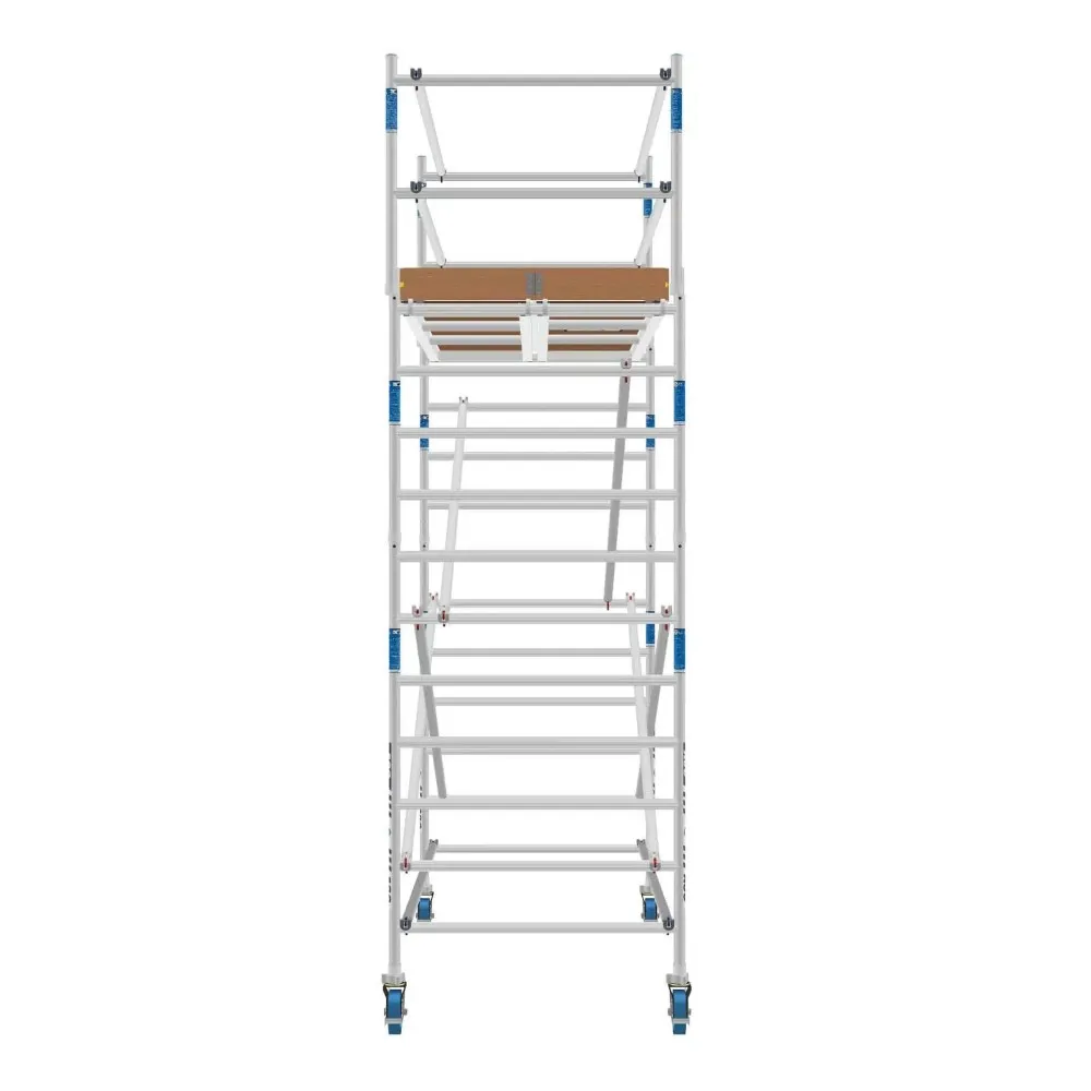 L’échafaudage roulant large ASC peut être monté jusqu’à une hauteur de travail impressionnante de 14,20 mètres, idéal pour les projets en hauteur.