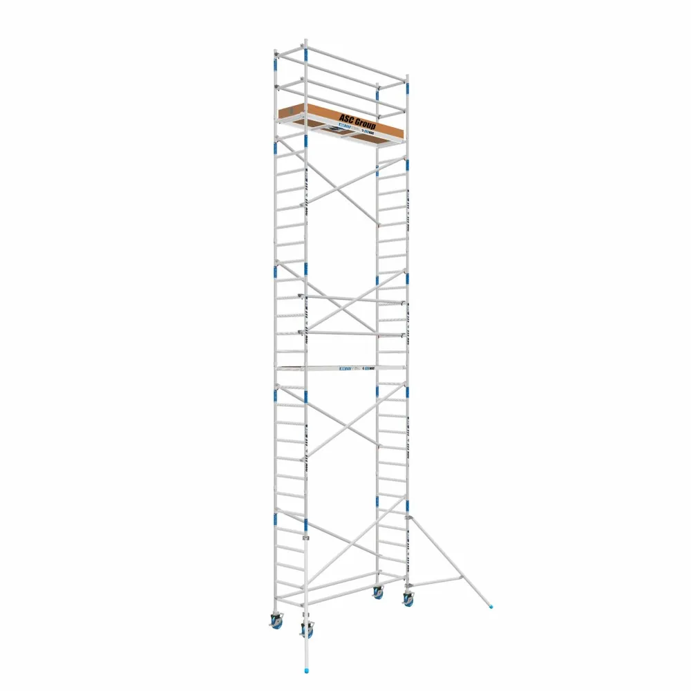 L’échafaudage roulant étroit ASC peut être monté jusqu’à une hauteur de travail impressionnante de 12,20 mètres, idéal pour les projets en hauteur.