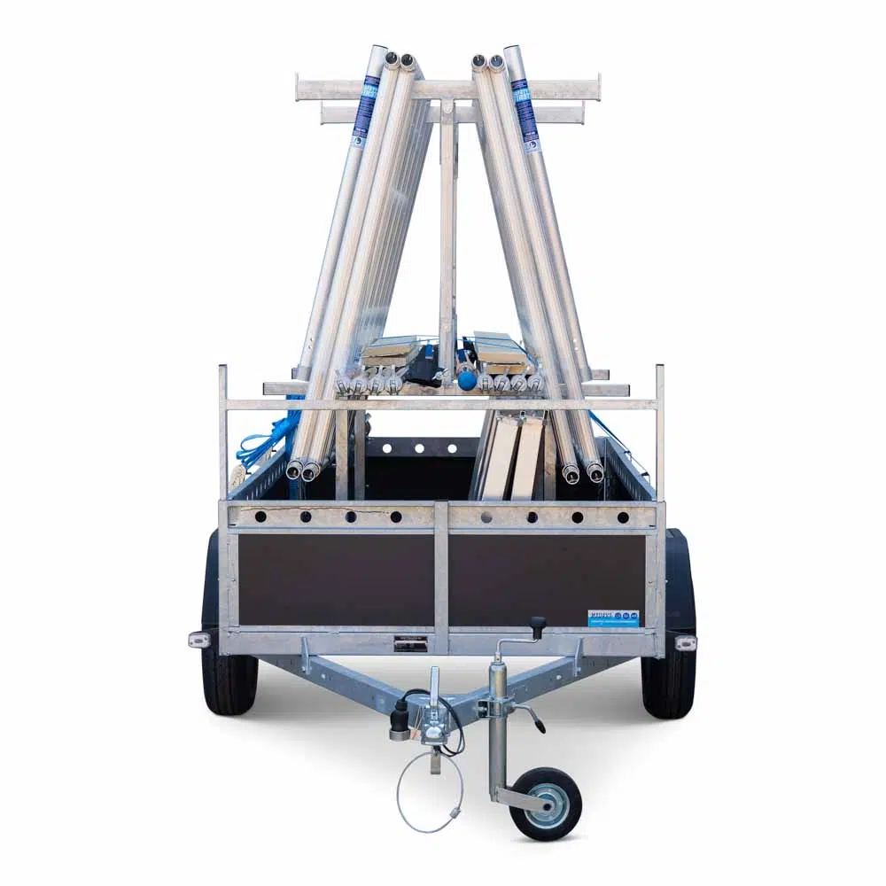 - Tous les pièces sont fermement et clairement sur le remorque d'échafaudage.