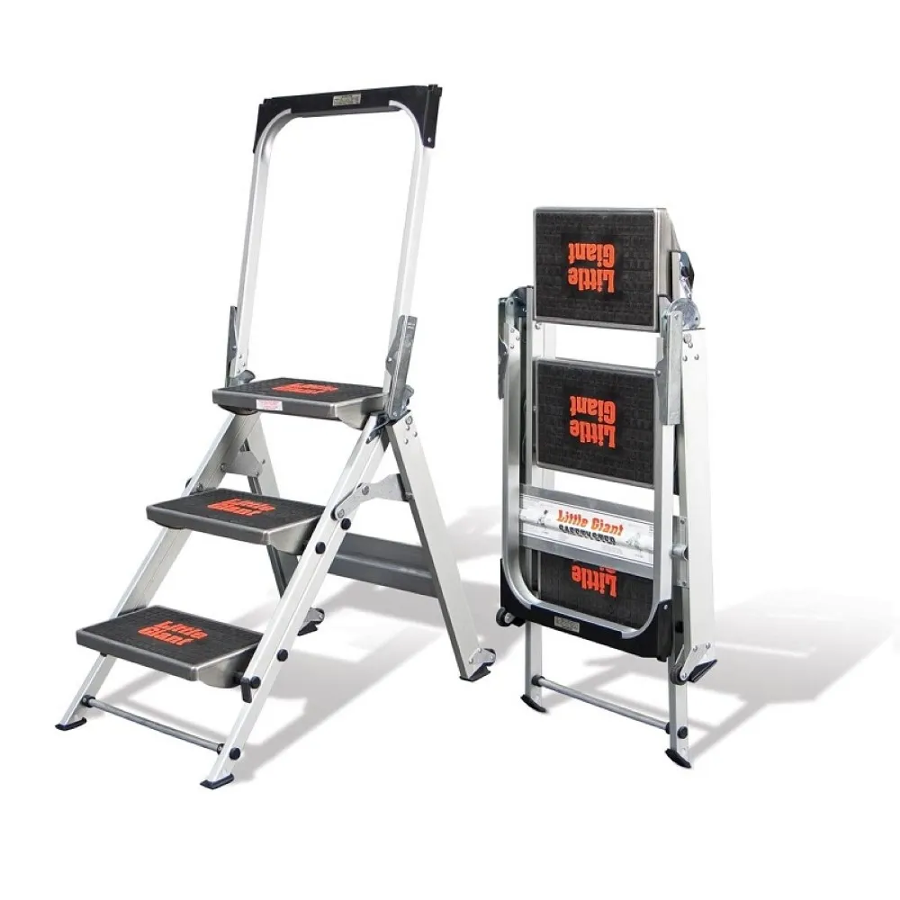 Escabeau de sécurité Little Giant Altrex avec 3 marches et garde-corps pliable ✓ Poids 9,1 kg ✓ Escabeau à marches larges, sûre et stable ✓ Livraison gratuite.