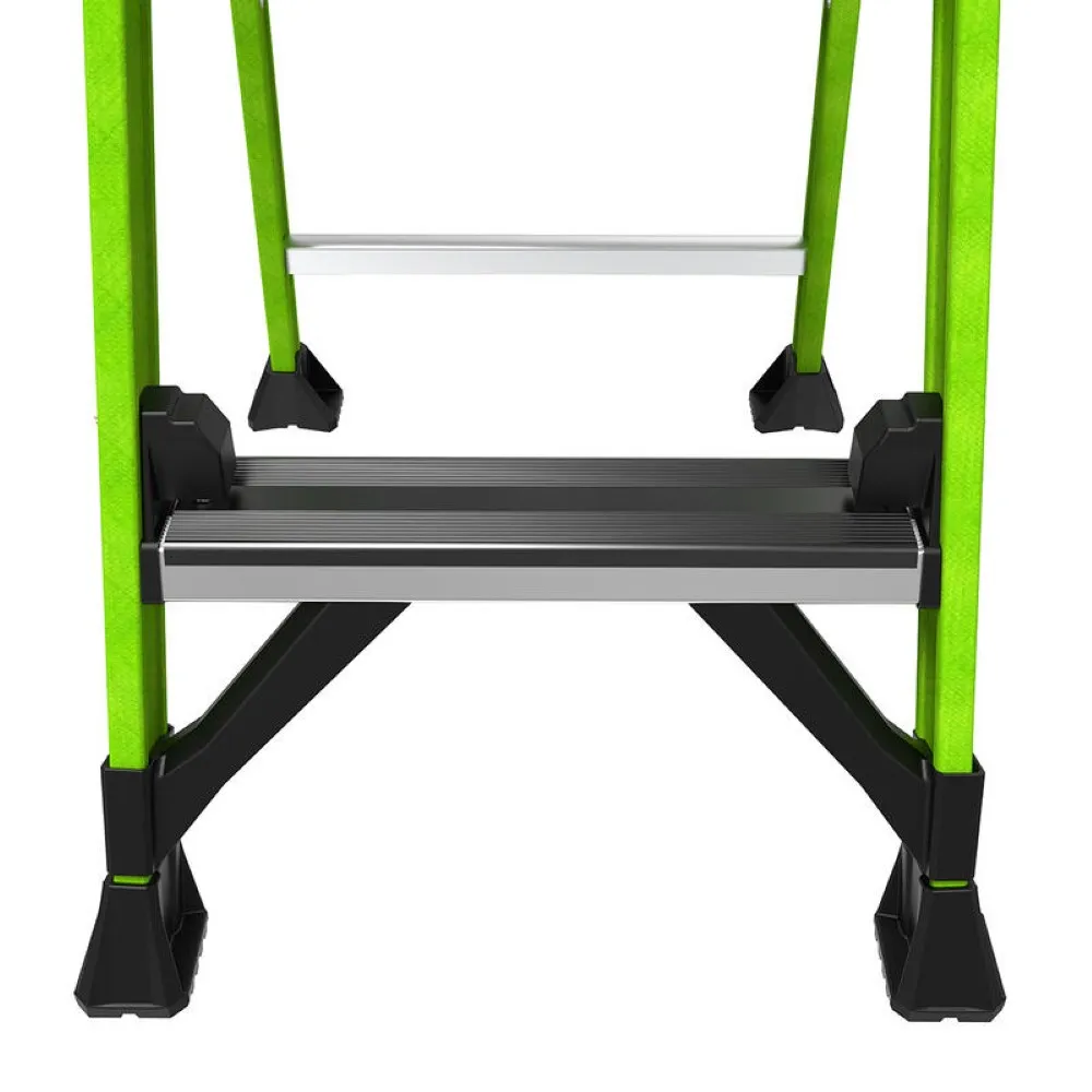 Le Little Giant MightyLite escabeau 6 marches est un escabeau léger en fibre de verre qui pèse 15% de moins que les escabeaux traditionnels en fibre de verre. Le faible poids de l'échelle facilite son transport et prévient ainsi les blessures, notamment au niveau du dos et des épaules. La Mightylite étant fabriquée en fibre de verre non conducteur, elle convient parfaitement aux travaux sur les installations électriques.