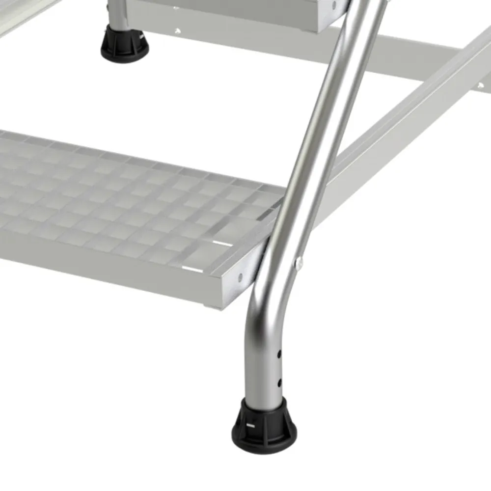 Les marches extra larges de 200 mm, dotées d’une surface nervurée antidérapante, garantissent une adhérence maximale et une sécurité optimale lors de la montée et de la descente. La large plateforme de 560 x 400 mm permet de se tenir debout de manière stable et confortable, même pendant des travaux prolongés.