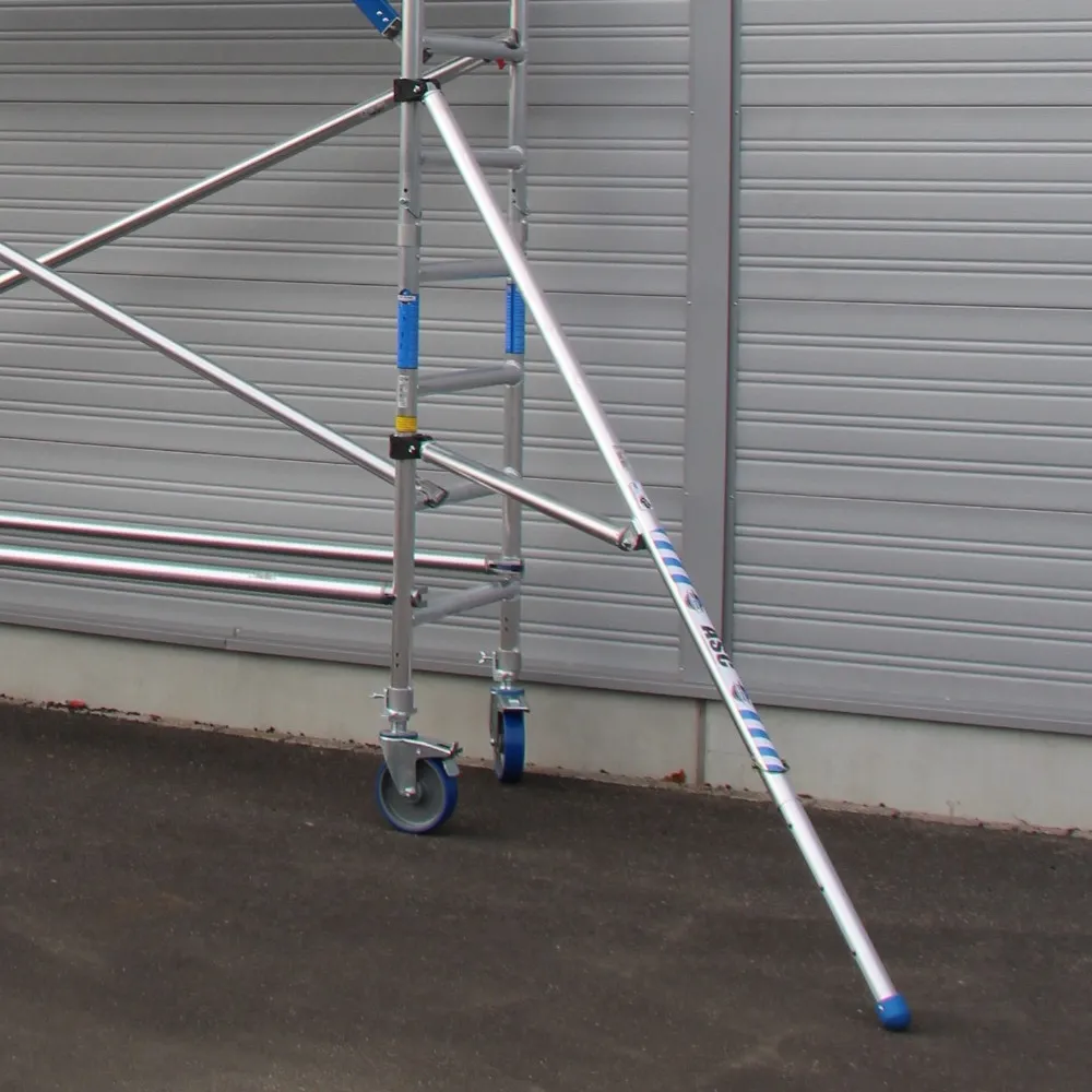 De ASC AGS Pro rolsteiger 135x250 voldoet aan de nieuwe norm. Vanaf 1 januari 2018 is het verplicht om altijd een leuning te hebben bij betreding van een volgend platform in een rolsteiger. De AGS waarborgt de veiligheid van de gebruiker door de mogelijkheid te bieden om een leuning te plaatsen vanaf een lagere platformhoogte. Door deze manier van opbouwen is een gebruiker na het beklimmen van een volgend platform direct verzekerd van en beveiligd door een reeds aanwezige leuning. Met deze nieuwe opbouwmethode heeft u veel minder onderdelen dan bij de traditionele rolsteigers zodat je de rolsteiger in snel tempo kunt opzetten.