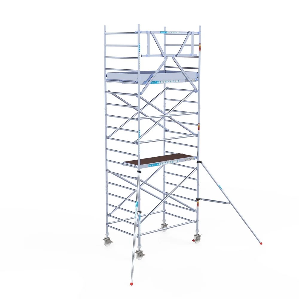 Deze professionele EuroScaffold rolstelling 135x190 is geschikt voor veelvoudig gebruik. Door het gebruik van een rolsteiger kan u makkelijk en veilig werken op hoogte uitvoeren. Dankzij het lichtgewicht aluminium en de vier dubbel geremde zwenkwielen is de rolsteiger makkelijk te verplaatsen.