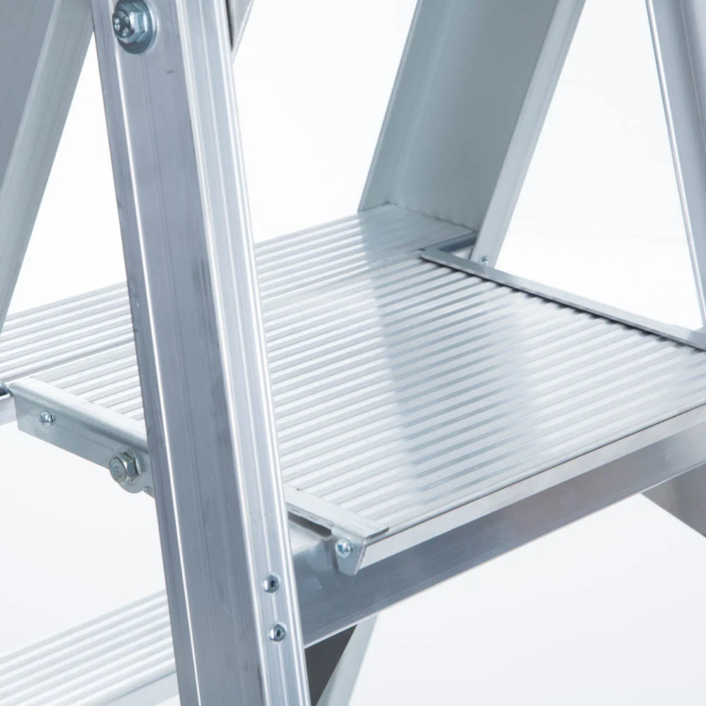 De aluminium bordestrap met 10 treden van Eurostairs is licht van gewicht en voorzien van een vuilafstotende coating. De trap heeft een handig gereedschapsbakje voor kleine gereedschappen. De professionele bordestrappen van Eurostairs zijn voorzien van een dubbel profiel voor extra stevigheid. Dankzij het speciale scharniersysteem is de bordestrap eenvoudig inklapbaar. Deze gebruiksvriendelijke bordestrap is geschikt voor intensief professioneel gebruik of als huishoudtrap in en rond het huis.