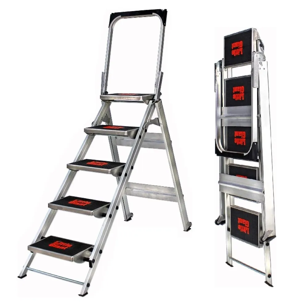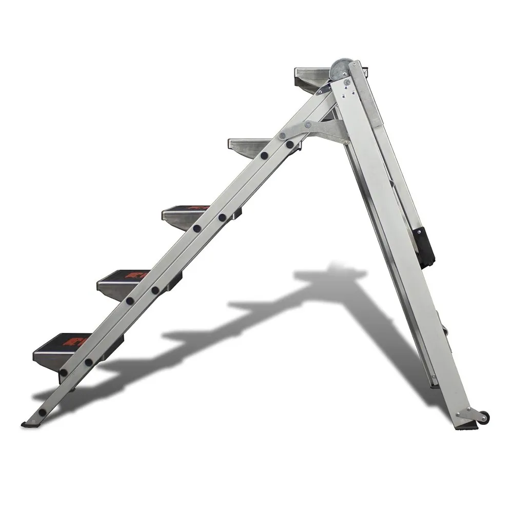 De Little Giant trapladder met 5 treden heeft twee wielen, wat handig is als je de trap vaak moet verplaatsen. Dankzij de steunbeugel heb je extra grip. Het gereedschapsbakje in de beugel is een handige plek voor je gereedschap.