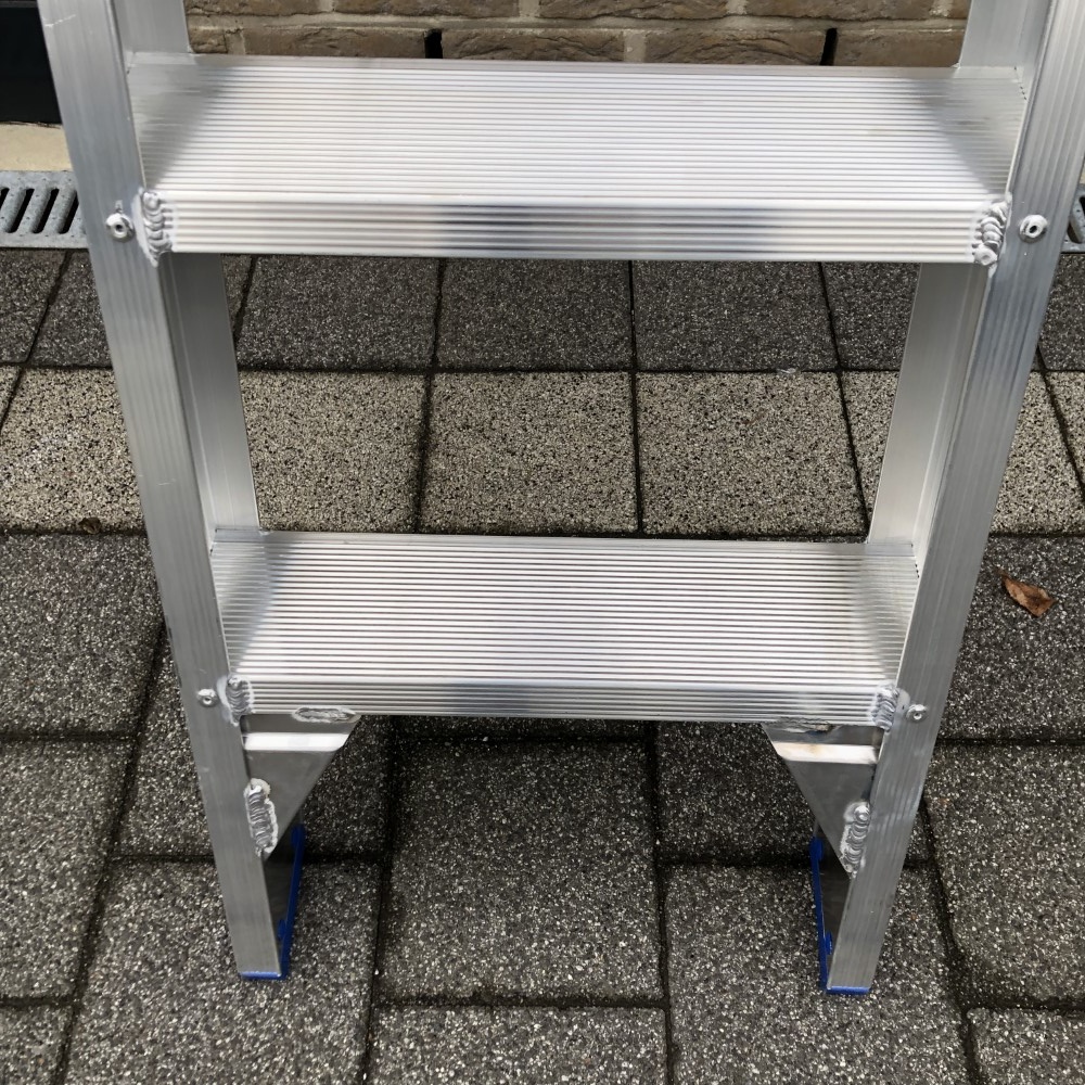 - 2 extra gelaste verstevigingshoeken onder de eerste trede.