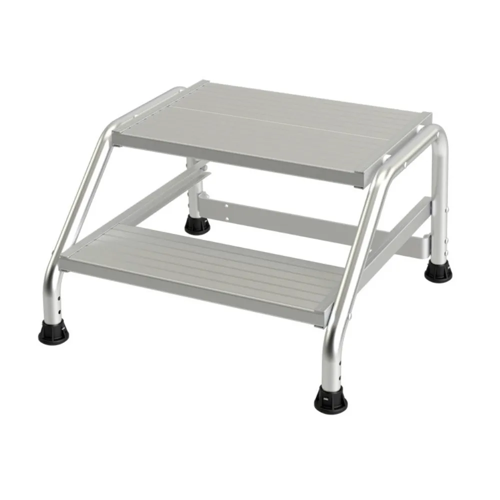 Tubesca Modul aluminium werkbordes met 2 treden. Zijn 200 mm brede, antislip geribbelde treden en 560 x 400 mm platform maken het een van de meest comfortabele trappen op de markt.